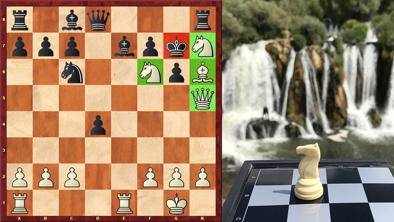 Here is a brilliant chess miniature where relying on opponent's mistake White manages to bring into life a mating combination! With a queen sacrifice White destroys Black's king-side and finishes up with the help of his knight and bishop! In the beginning of the video you can solve the daily puzzle! _____________