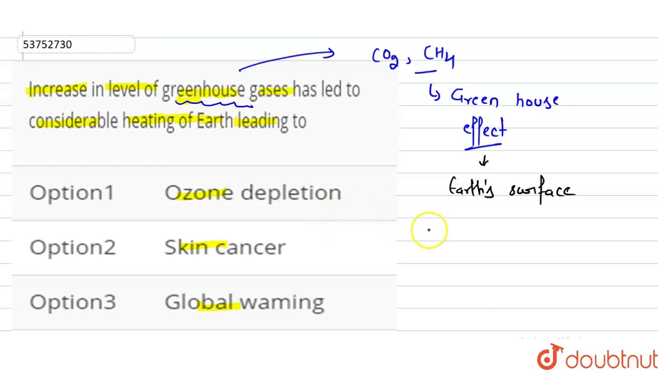 Increase in level of greenhouse gases has led to considerable heating of Earth leading toIncrease in level of greenhouse gases has led to considerable heating of Earth leading to